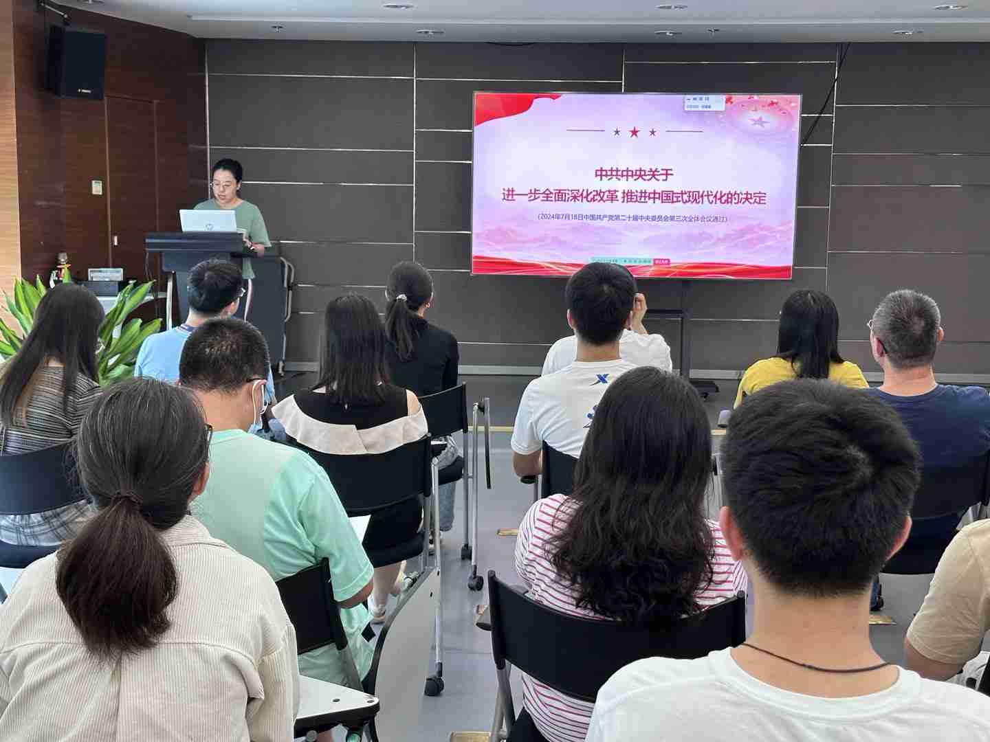 925日,,918.com党总支召开会议,,聚焦党的二十届三中全会审议通过的《中共中央关于进一步全面深化改革 推进中国式现代化的决定》(以下简称《决定》)原文,,专题学习全会精神,,进一步提高思想认识、、、强化理论武装。。党总支全体党员、、、发展对象、、、入党积极分子参加会议。。。。