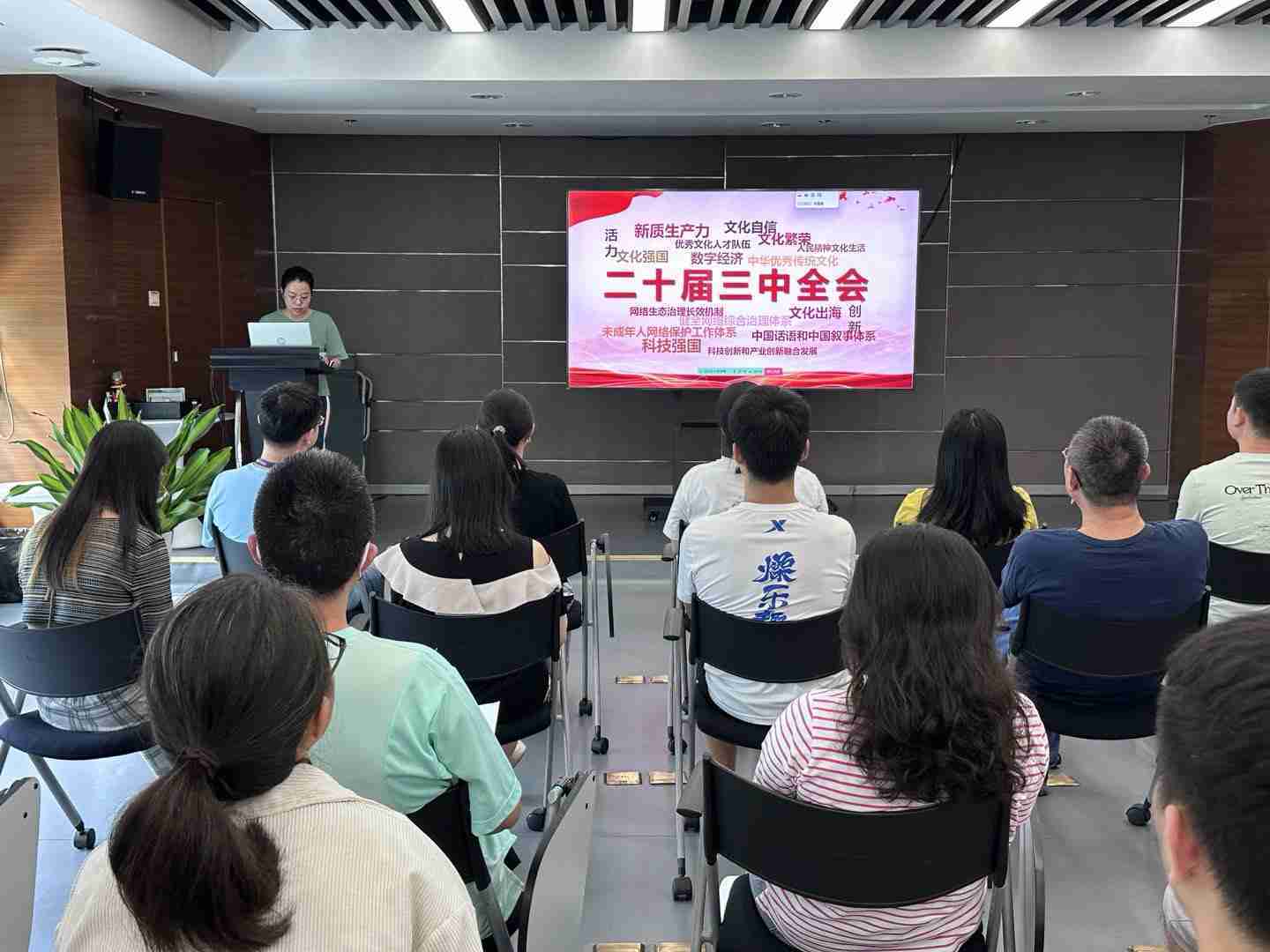 与会人员深入学习《决定》内容。。党的二十届三中全会提出必须增强文化自信,,发展社会主义先进文化,,弘扬革命文化,,传承中华优秀传统文化,,,加快适应信息技术迅猛发展新形势,,,,构建更有效力的国际传播体系,,,这为广大文化产业工作者指明了奋斗方向。。。。